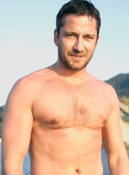 Gerard Butler goes shirtless on the set of his new movie, "Of Men and Mavericks", in Los Angeles.